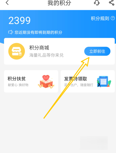 2、然后找到积分商城,点击前往。