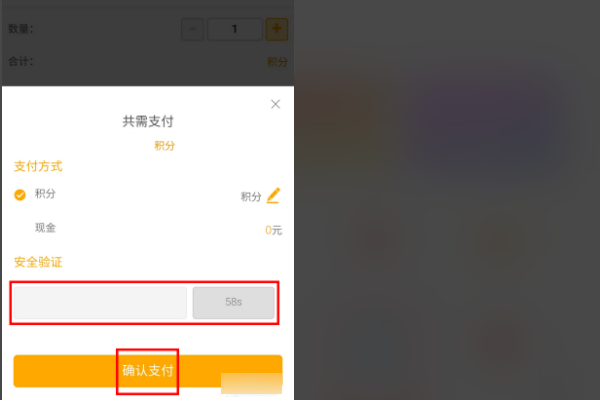 6、选择积分支付,点击获取验证码,填写收到的手机验证码,然后确认支付。