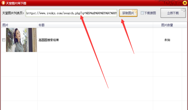 4.将刚才复制的链接粘贴到天堂图片网新的对话框里,然后点击获取图片,如图: