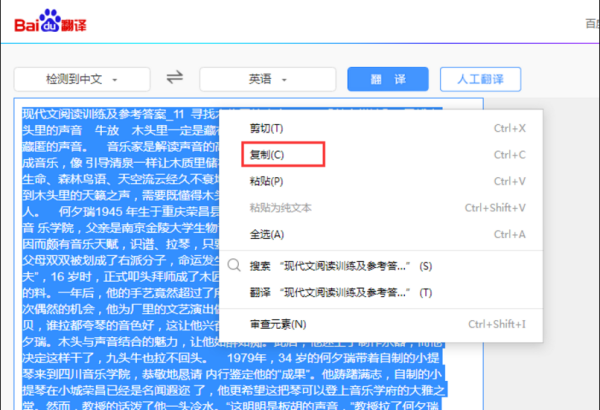 三、这时会跳转至百度翻译界面,全选左边的文字。