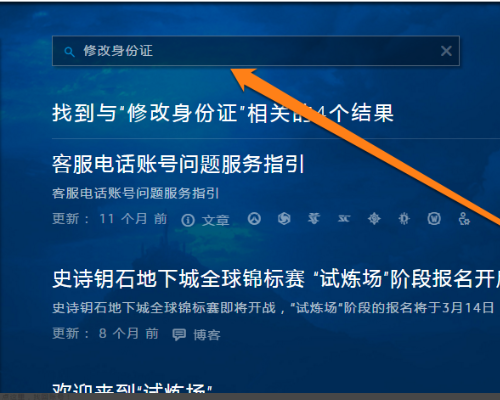 2、单击支持按钮后,将出现问题搜索框。输入如身份证修改进行搜索。
