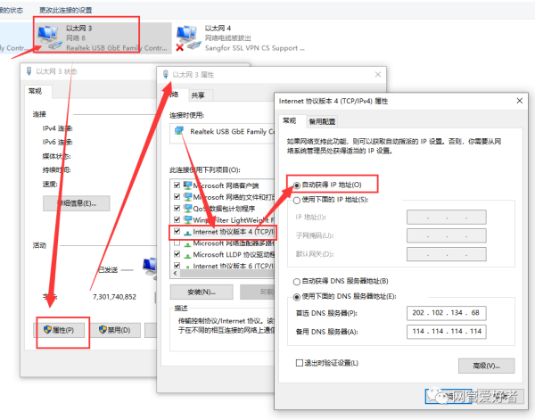 选择“自动获得IP地址”和“自动获得DNS服务器地址”,点击“确定”即可。