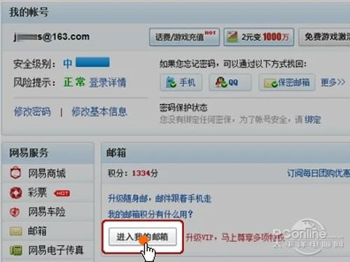 3、登录网易邮箱帐号页面后,点击页面上的“进入我的邮箱”按钮,即可进行网易163邮箱。