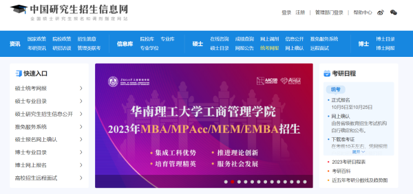 也就是研招网,中国研究生招生信息网是隶属于教育部的以考研为主题的官方网站,是教育部唯一指定的研究生入学考试网上报名及调剂网站,主要提供研究生网上报名及调剂、专业目录查询、在线咨询、院校信息、报考指南和考试辅导等多方面的服务和信息指导。