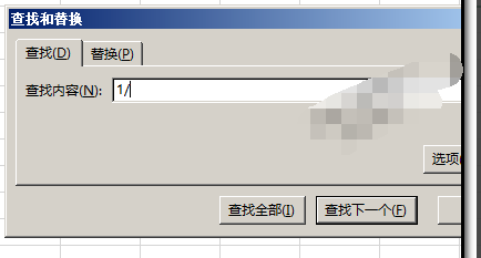 3.选中表格,再CTRL+H,调出查找对话框 ;然后,在查找内容这里输入要查找的文字;关键词是1月,但单元格显示日期格式是斜杠代替文字,也就是1/,所以,我们在查找内容编辑框内输入:1/,再点:全部查找
