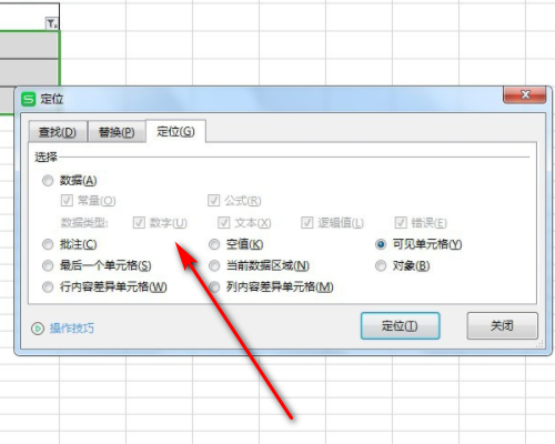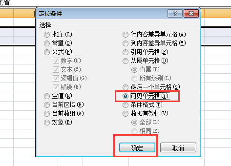 六、打开定位条件窗口后,勾选“可见单元格”点击“确定”。