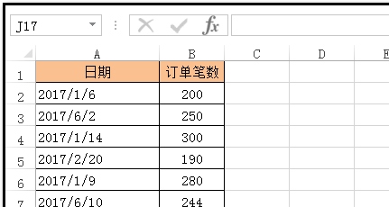 1.这个表格;现在,需要把2017年1月的数据全部查找出来,并所在行整行粘贴到指定位置。