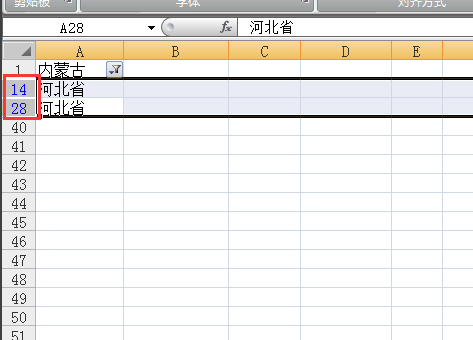 四、筛选出结果后,选中筛选出全部结果的行。