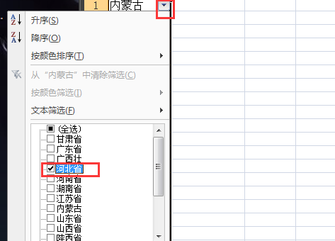 三、添加筛选按钮后,点击该按钮 ,选择要筛选的关键字进行筛选。
