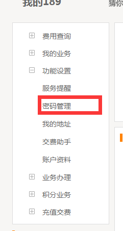 1、首先打开中国电信网上营业厅网站,然后登录自己的宽带帐号或者绑定的手机号,登录后进入个人中心,选择密码管理如图:
