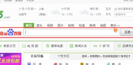 1、打开电脑,点击浏览器,进入浏览器首页,找到百度搜索栏区域,如下图所示。