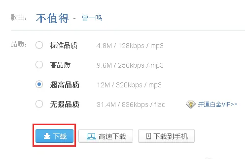 5、弹出歌曲“品质”信息对话框,单击“下载”按钮,如下图所示。