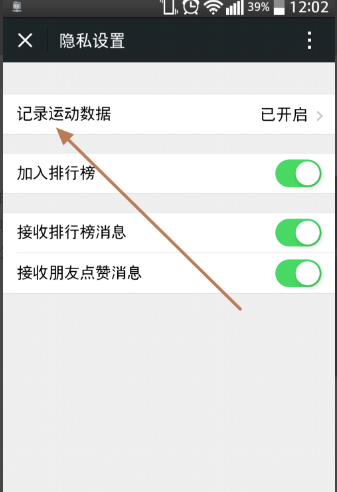 9、点击:“记录运动数量”。另外下面的滑动按钮是对你的隐私的保护,你可以关闭不对外。