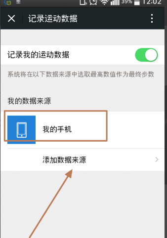 10、默认的运动量数据来源是你的本机,点击添加数据来源,可以添加其他具有功能的设备,如腕戴设备。
