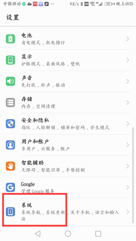 2、在设置菜单列表中就可以看到系统设置,点击“系统”。