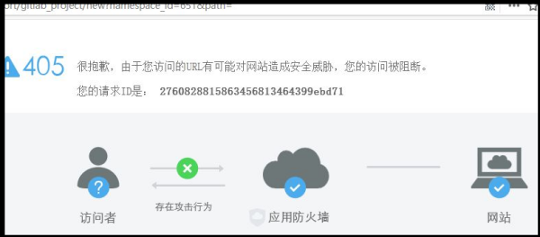 这是由于应用防火墙对URL访问判定存在攻击行为,从而进行了安全拦截。
