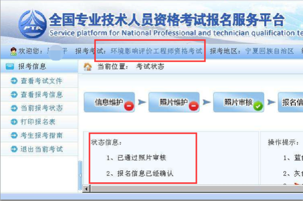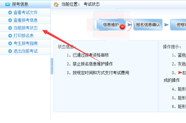 5、进入到该网站的后台以后点击左侧的查看报考信息按钮下面的查看当前报考状态。