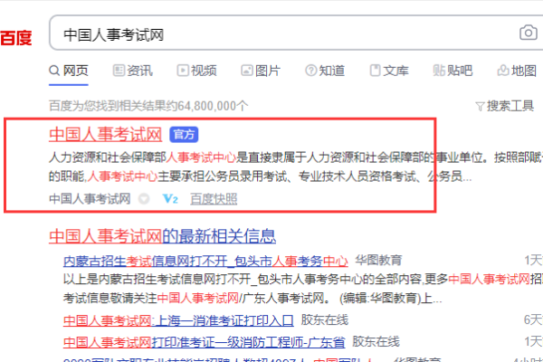 1、在电脑的百度上输入中国人事考试网,找到其官方网站以后点击进入。