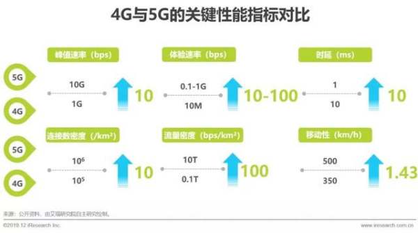 为满足移动互联网及物联网快速发展的需求,5G的速率、时延、移动性及连接量等关键性能指标均有极大的提升。在速率方面,5G的峰值速率是10Gbps,特殊场景下是20Gbps,是4G的10(20)倍,5G的体验速率是0.1-1Gbps,是4G的10-100倍。在时延方面,5G时延的目标值是1ms,只有4G的1/10。在连接方面,5G每平方千米可连接100万台终端,是4G连接量的10倍。大带宽、高可靠低时延及大连接是5G的三大优势,将为用户带来极致生活与娱乐体验的同时,也将有效推动行业向智慧化发展。