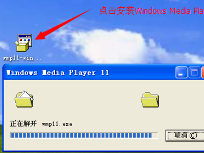 应用程序发生错误应该是Windows Media Player的组件损坏。解决方法如下: