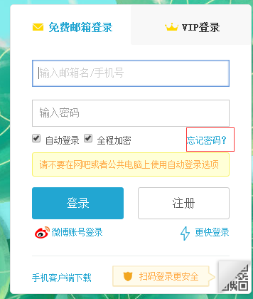1、首先我们来到新浪邮箱登录页,点击右下角“忘记密码?”