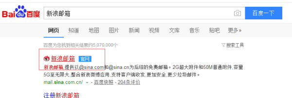 1,百度搜索新浪邮箱,并进入新浪邮箱官网
