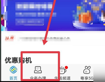 1、首先打开并登录广东移动app,点击进入业务办理页面。