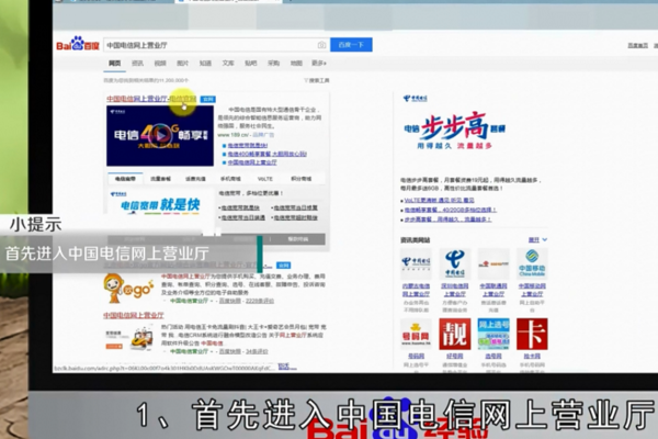 1、在百度搜索运营商的网上营业厅的主页并点击。