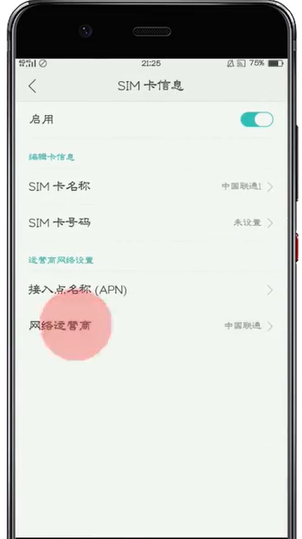 3、仍未解决的话,随意点击一张SIM卡,点击网络运营商设置。