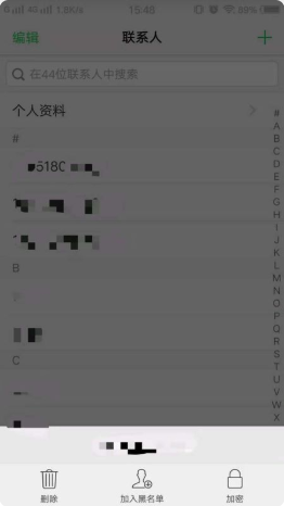 2、找到你想加入黑名单的联系人,按住几秒钟,就会出现一个框。