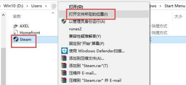 1.首先,我们在桌面上右键打开steam的快捷方式,选择打开文件所在位置,如下图所示。
