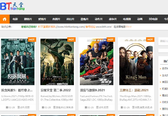 电影天堂是国内较大的电影下载平台,已有超过100万部影视资源,千万小时时长。电影天堂资源丰富,门类齐全,涵盖电影、电视、综艺、动漫等,几乎所有电影资源都有DVD格式收录。