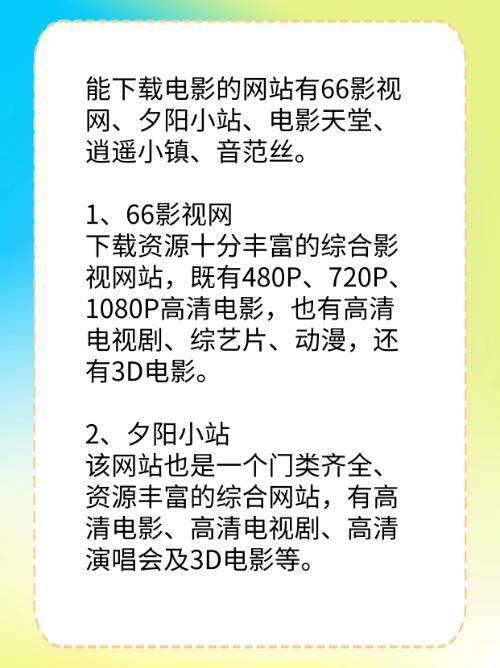 能下载电影的网站有66影视网、夕阳小站、电影天堂、逍遥小镇、音范丝。
