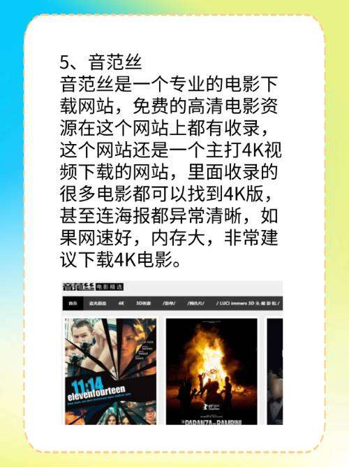 音范丝是一个专业的电影下载网站,免费的高清电影资源在这个网站上都有收录,这个网站还是一个主打4K视频下载的网站,里面收录的很多电影都可以找到4K版,甚至连海报都异常清晰,如果网速好,内存大,非常建议下载4K电影。