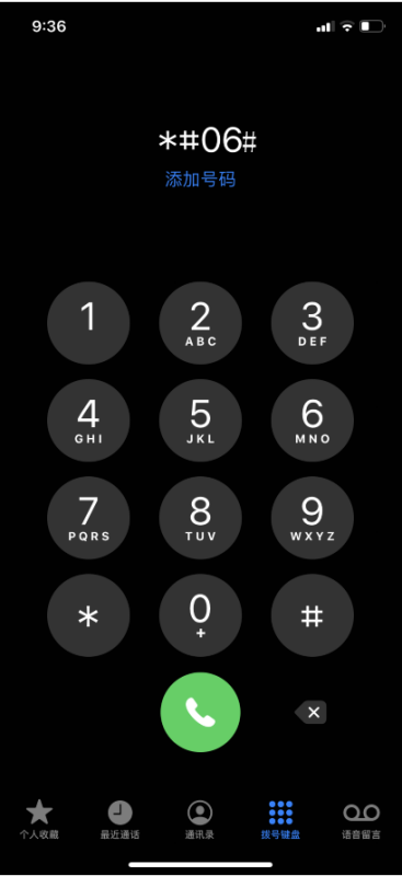 4、进入到拨号键盘页面,在拨号界面输入“*#06#”。