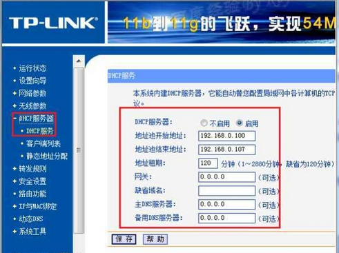 4,注意,如果是桥接的,则再登录主路由器以外的其它所有路由器,在“DHCP服务”,在右边将“DHCP服务器”设置为“不启用”。