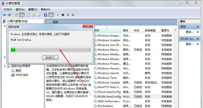 3、找到并选中WLAN AutoConfig无线服务选项,点击重新启动此服务。