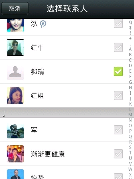 6、如果想继续添加的话,之前所选定的联系人后面有个“+”,点击可以再添加。