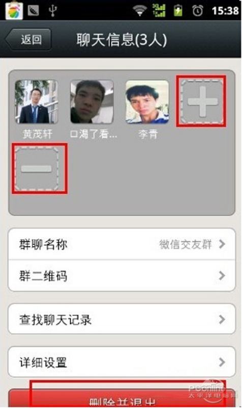 点击聊天界面右上角的按钮,选择“—”,然后点成员头像左上角的“—”就可以删除群成员;或者单击“+”,可以添加群成员。删除退出微信群可以点击下面的“删除并退出”按钮。