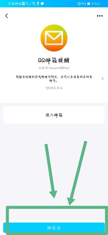 3.点击进入QQ邮箱,提醒在最下方点加关注