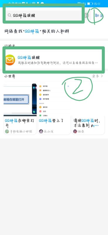 2.在搜索里面打入QQ邮箱提醒,点击输入法上的搜索,就能看到QQ邮箱提醒