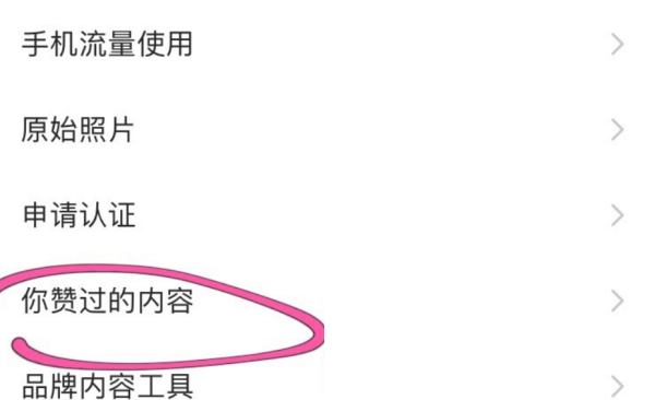 6、进入账户后,就可以找到“你赞过的内容”这一个选项,这里可以查看自己点过赞的照片,如图所示。