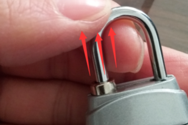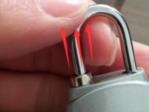 3、挂钩处向上提不要动,从上至下依次拨动密码。
