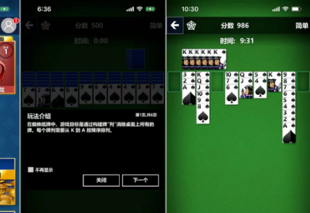 其中包含了以前版本的Windows中内置的Klondike(纸牌)、FreeCell(空当接龙)、Spider(蜘蛛纸牌),以及Pyramid(金字塔纸牌)和TriPeaks(远古纸牌)五种玩法。