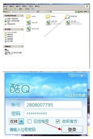 3.把程序下载解压并打开CoolQ.exe这个应用程序,并且用QQ登录。