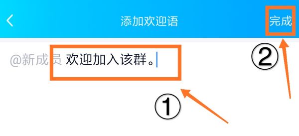 8.进入后可以【填写】你要发给新成员的话,比如欢迎加入该群;再点击【完成】,就可以了。