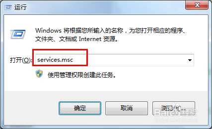 5、接下来打开”运行“对话框,输入”services.msc“进入系统服务程序。