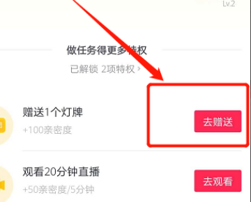 4、加入成功之后,点击赠送一个灯牌后面的【去赠送】,如下图所示。
