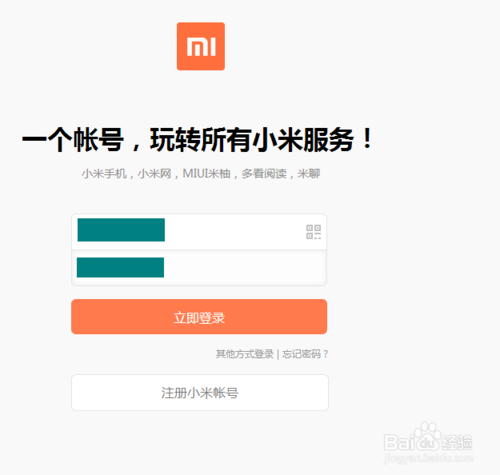 登录小米帐号。如果没有小米帐号,可以先注册一个。