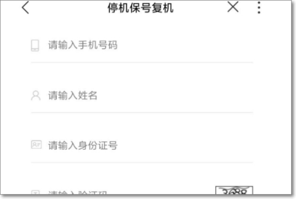 3、依次输入复机号码,真实姓名,身份证号以及验证码。